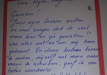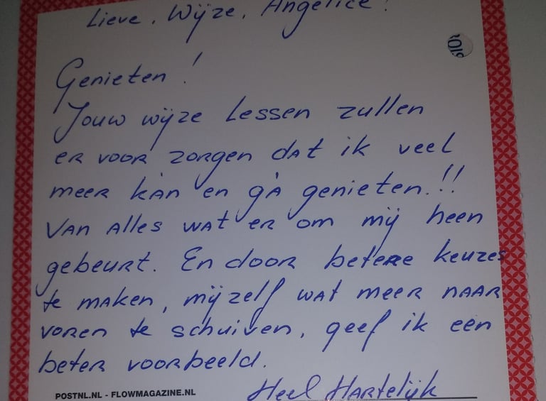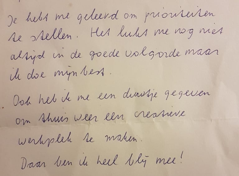 Voor mijn gevoel heb ik bevestiging gekregen dat ik op de goeie weg ben. Wat inzichten betreft, heb ik meer het gevoel dat ik mag zijn wie ik ben en niet perfect hoef te zijn.